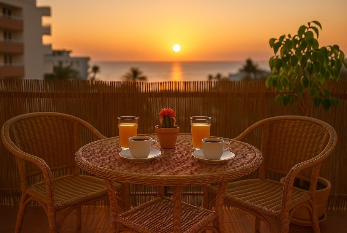 Cada día comienza con un amanecer dorado sobre el mar. Su orientación este ilumina el salón y el dormitorio principal desde primera hora, creando un ambiente cálido, atractivo y perfecto para el alquiler turístico o de temporada —un tipo de vivienda que siempre tiene demanda en esta zona privilegiada.