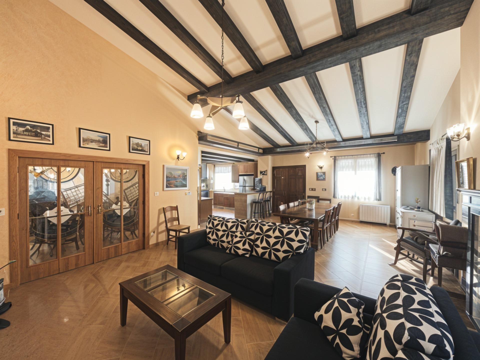 La planta principal recibe con un agradable porche y se organiza en amplios espacios abiertos y luminosos. Destaca el salón principal con chimenea, ideal para reuniones familiares, además de un segundo salón independiente concebido como zona de ocio completa, equipado con cocina propia, barbacoa, horno de leña, chimenea y baño privado, con acceso directo desde la calle, perfecto para celebraciones o reuniones sin interferir en la zona privada de la vivienda.