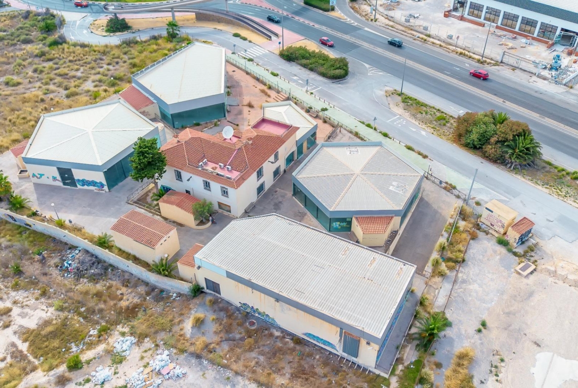 Complejo comercial de dos naves acristaladas de 376m² y 318m² cubiertos sobre parcela de 5.334 m², en un complejo comercial rodeado de una casa para restaurante y dos naves alquiladas ya para sector de automoción.