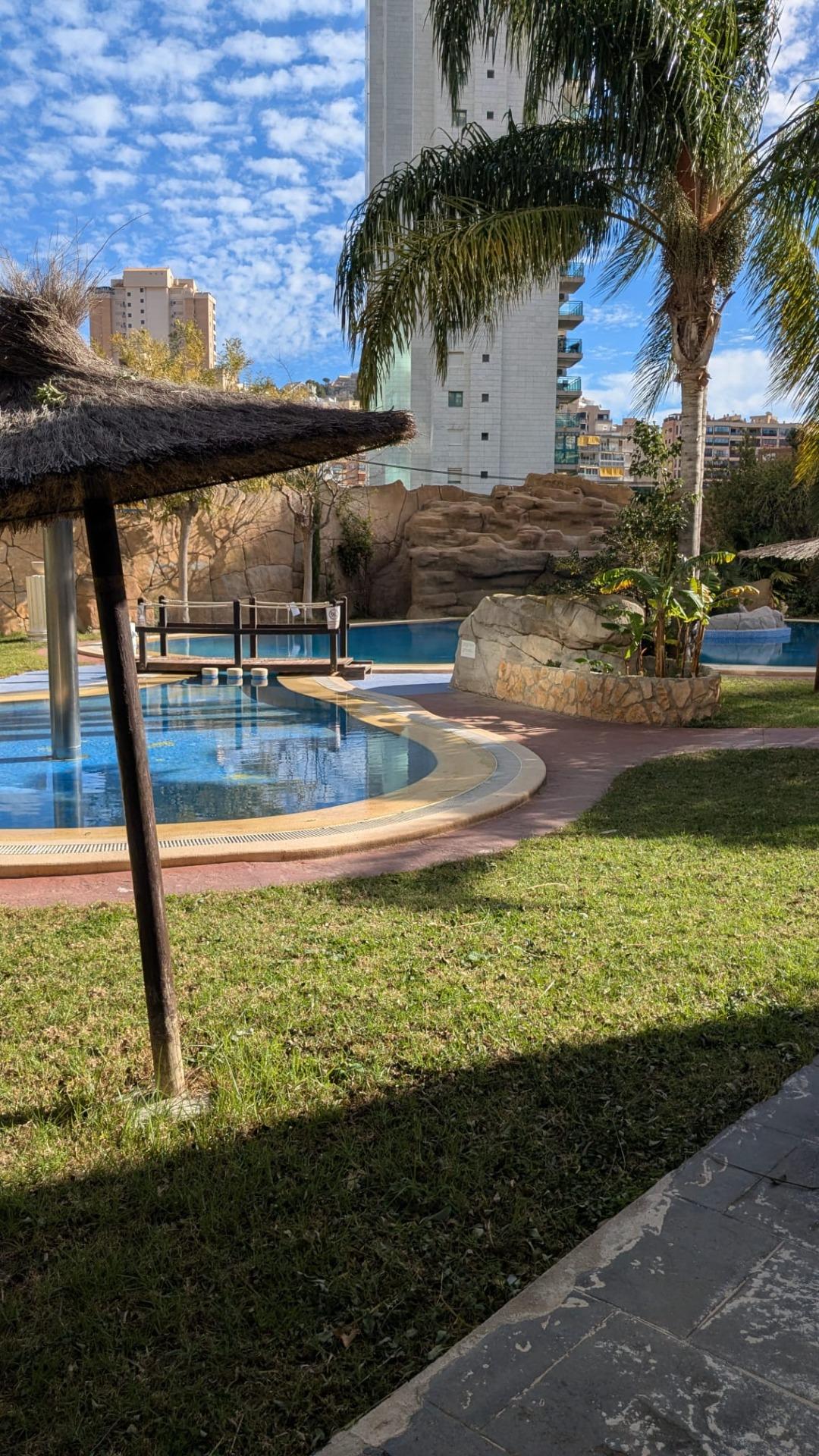 Ubicada en una zona residencial tranquila, bien comunicada y cercana a todos los servicios: supermercados, comercios, transporte público y a pocos minutos del centro de Benidorm y de la playa.