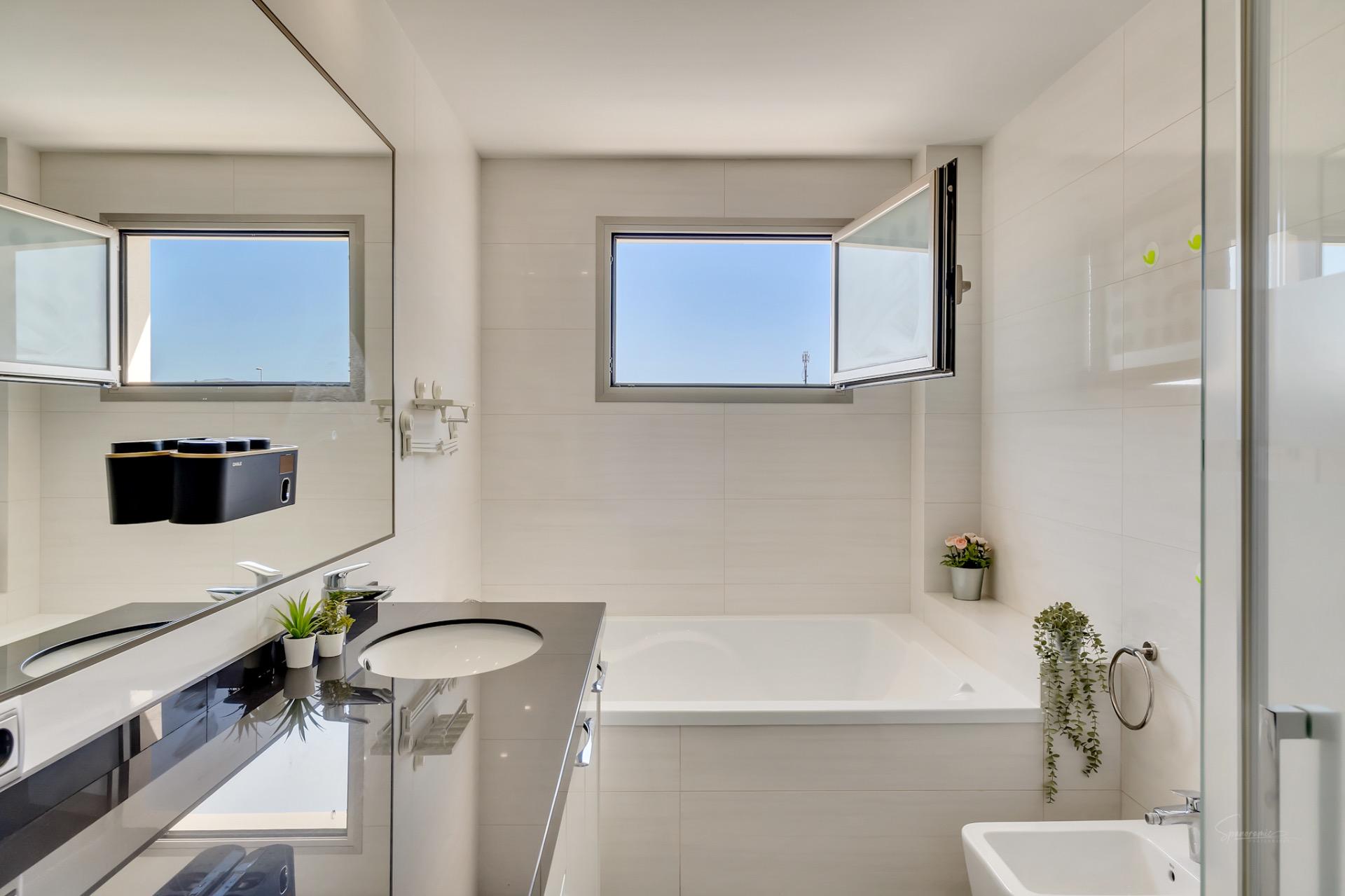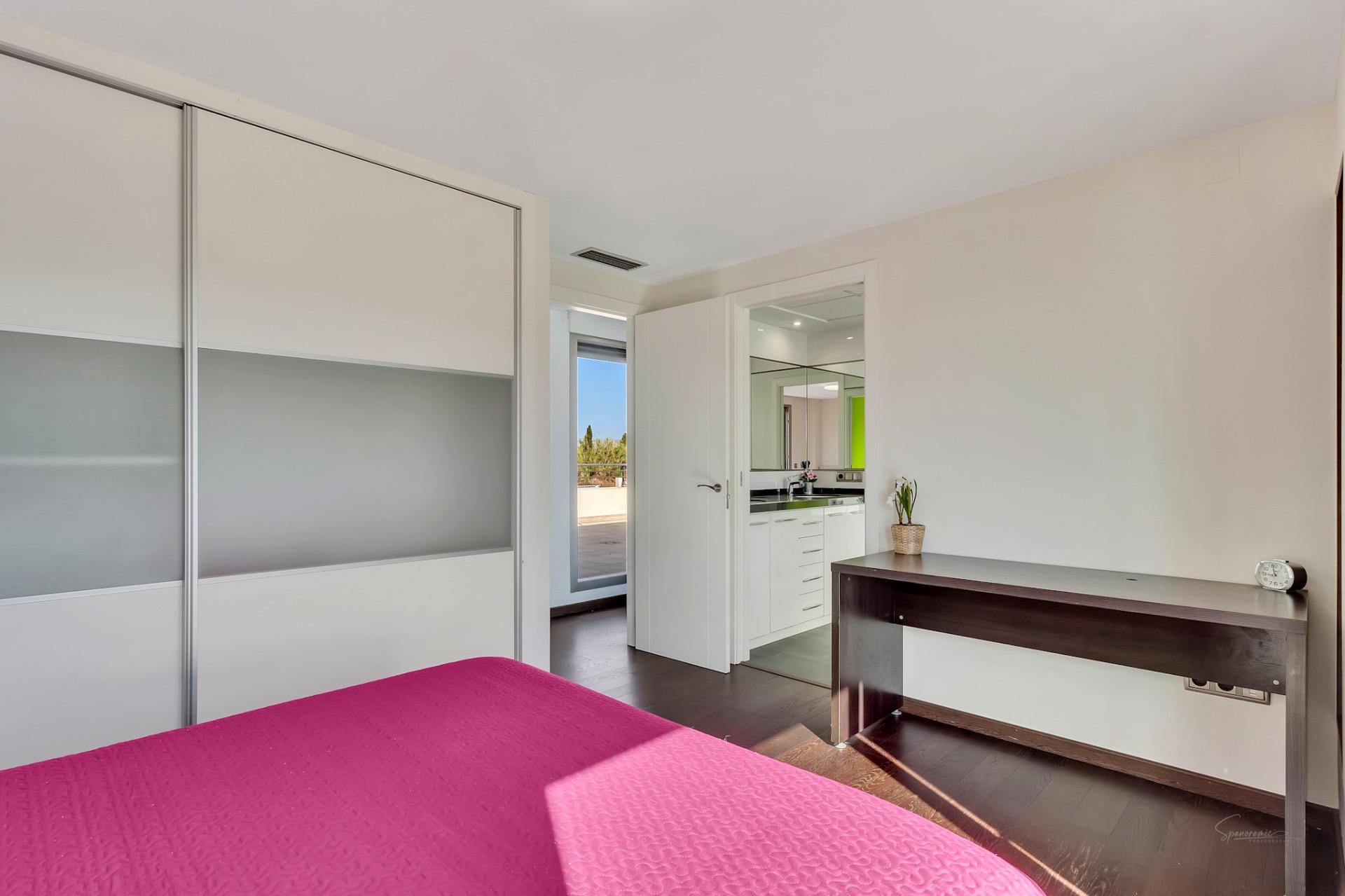 El chalet incluye cuatro baños completos y un aseo adicional, todos diseñados con materiales de primera calidad que aseguran tanto elegancia como durabilidad. Para los amantes del automóvil, la casa dispone de un garaje con capacidad para cuatro coches, proporcionando seguridad y espacio suficiente para cualquier colección de vehículos.