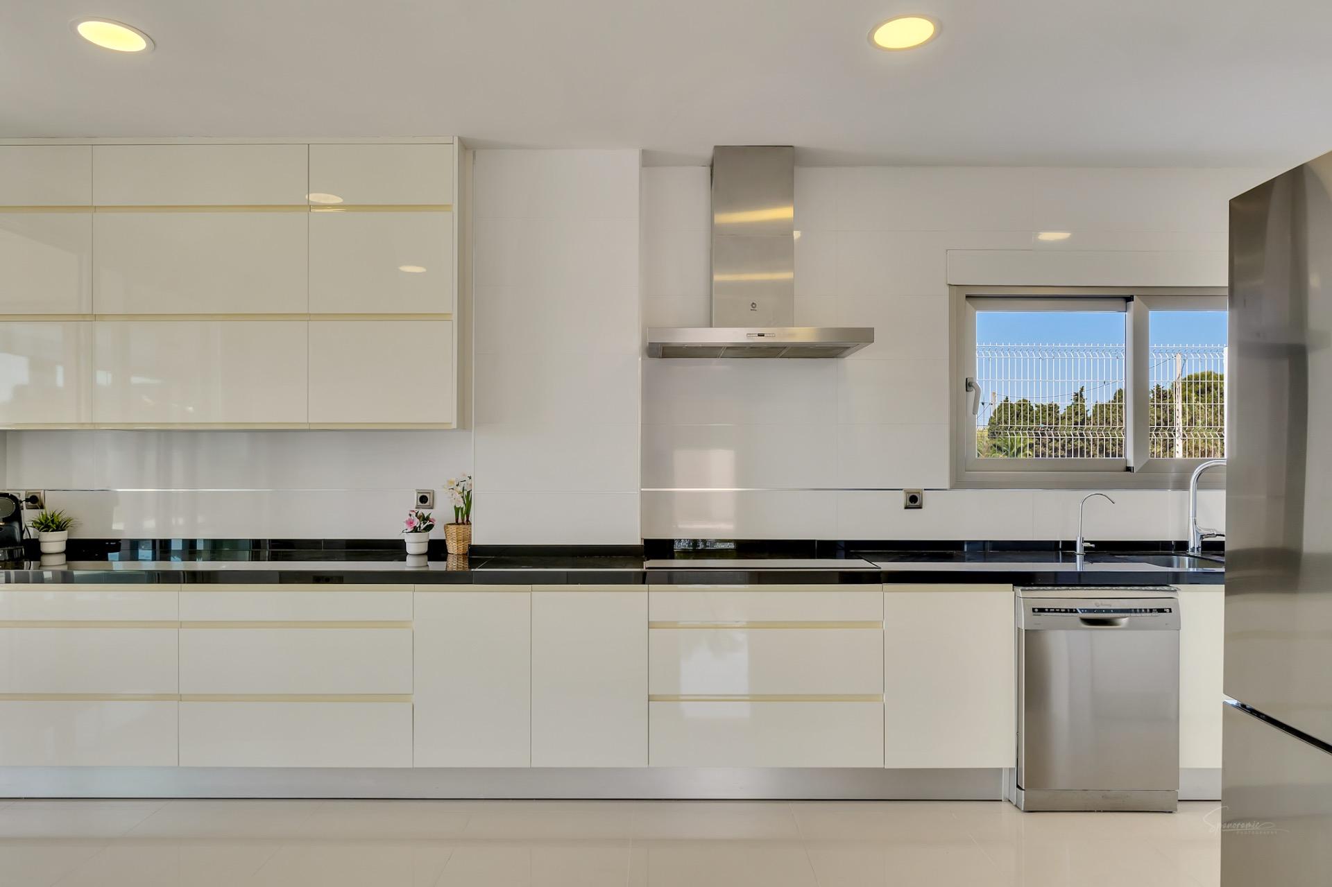 La propiedad cuenta con cinco amplias y luminosas habitaciones, ideales para familias numerosas o para recibir invitados. El salón comedor es un espacio amplio y lleno de luz natural, perfecto para relajarse o disfrutar de reuniones sociales. La cocina, completamente equipada con los electrodomésticos más modernos, ofrece un ambiente ideal para cocinar con comodidad y estilo.