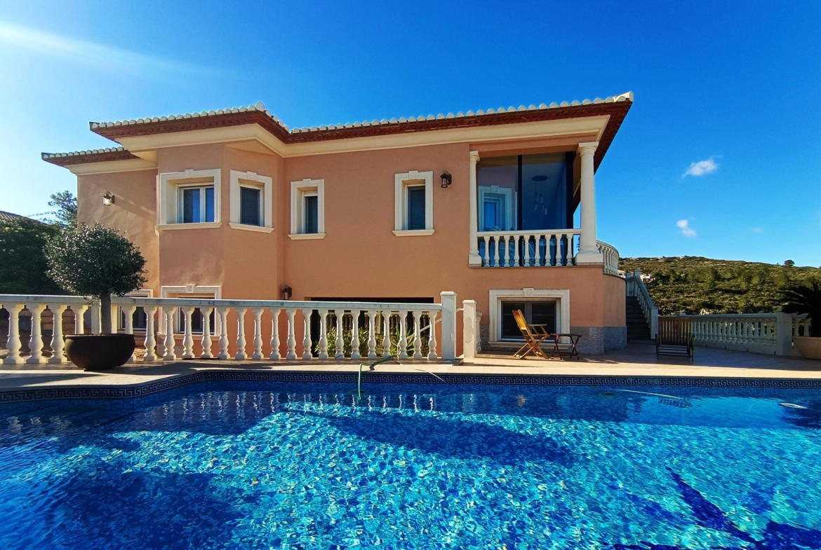 Esta icónica villa tiene 365mts y una parcela de 867mts y ha sido renovado en 2023. El acceso desde la calle nos lleva a un inmenso recibidor con columnas dóricas, amplias galerías, un acogedor salón con una chimenea de mármol, un opulento comedor, una gran naya acristalada, con comedor y salón para disfrutar de las panorámica vistas al mar y al valle; además una terraza exterior igualmente aprovisionada de comodidad y bienestar.