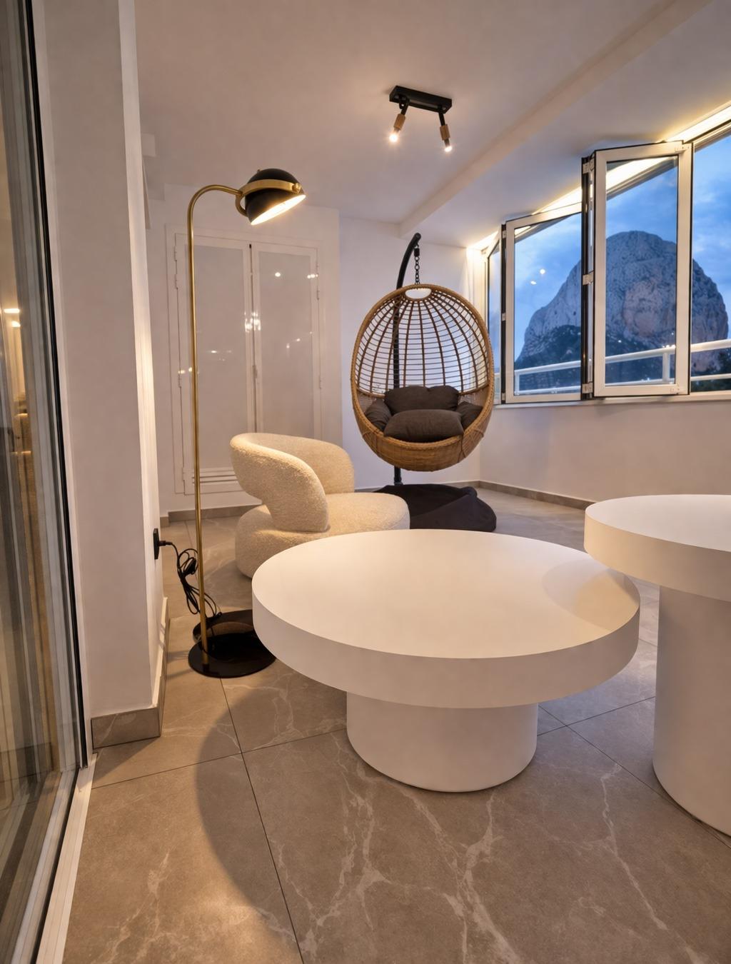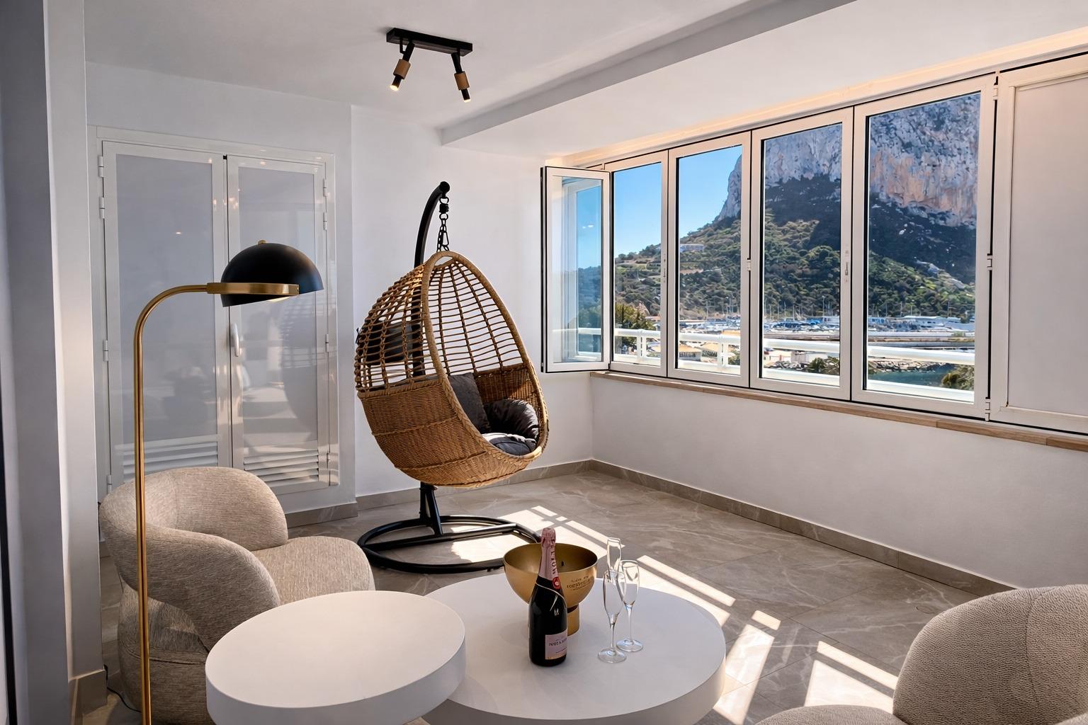 Desde su cuarta planta, la vivienda regala una panorámica abierta al mar Mediterráneo, con el Peñón de Ifach como protagonista, creando un entorno único donde cada amanecer y cada atardecer se convierten en una experiencia.
