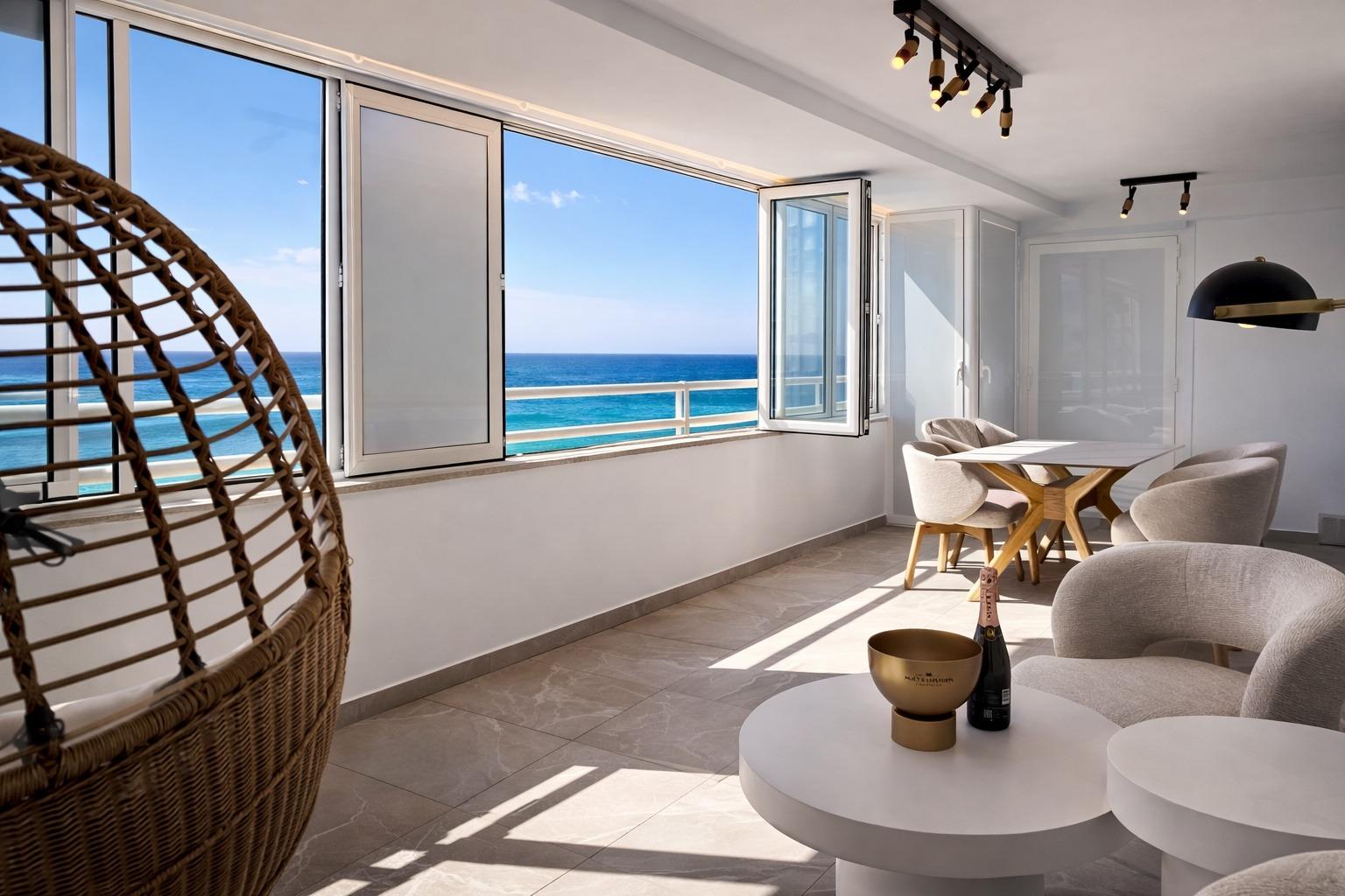 Su orientación sur garantiza una excelente luminosidad durante todo el día, mientras que su ubicación en primera línea permite acceso directo al paseo marítimo, restaurantes y todos los servicios de la zona.