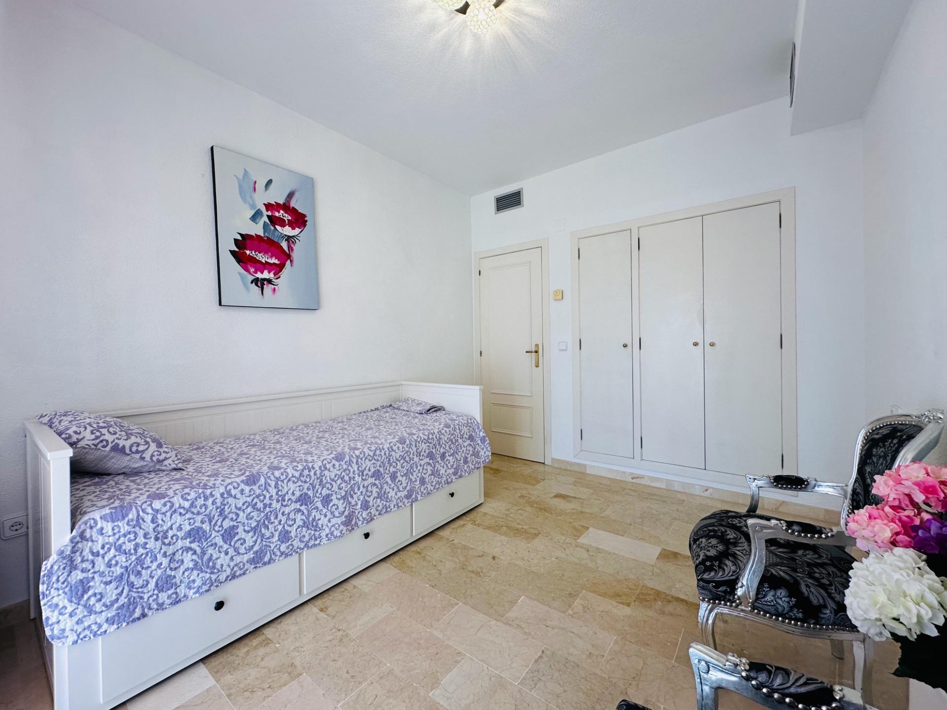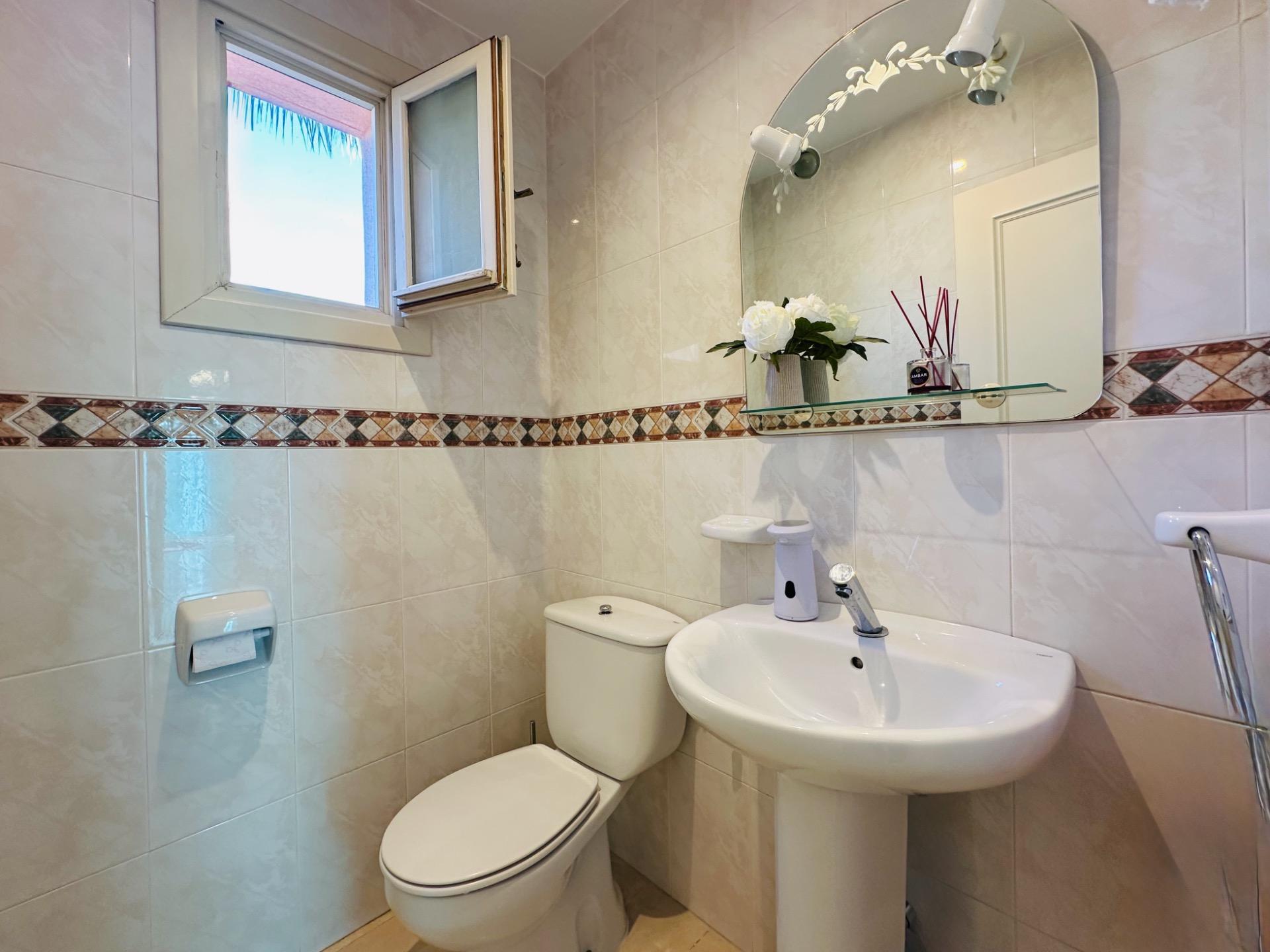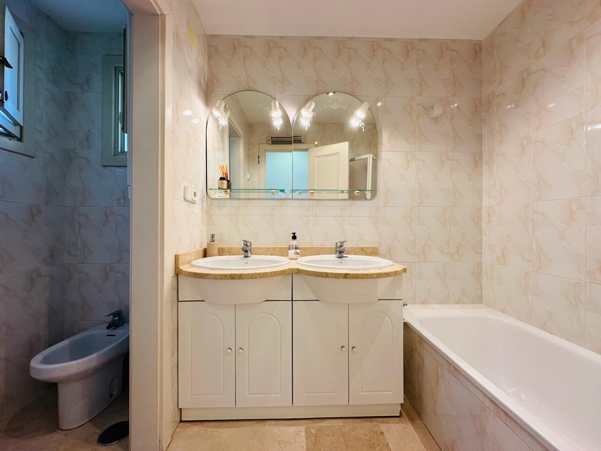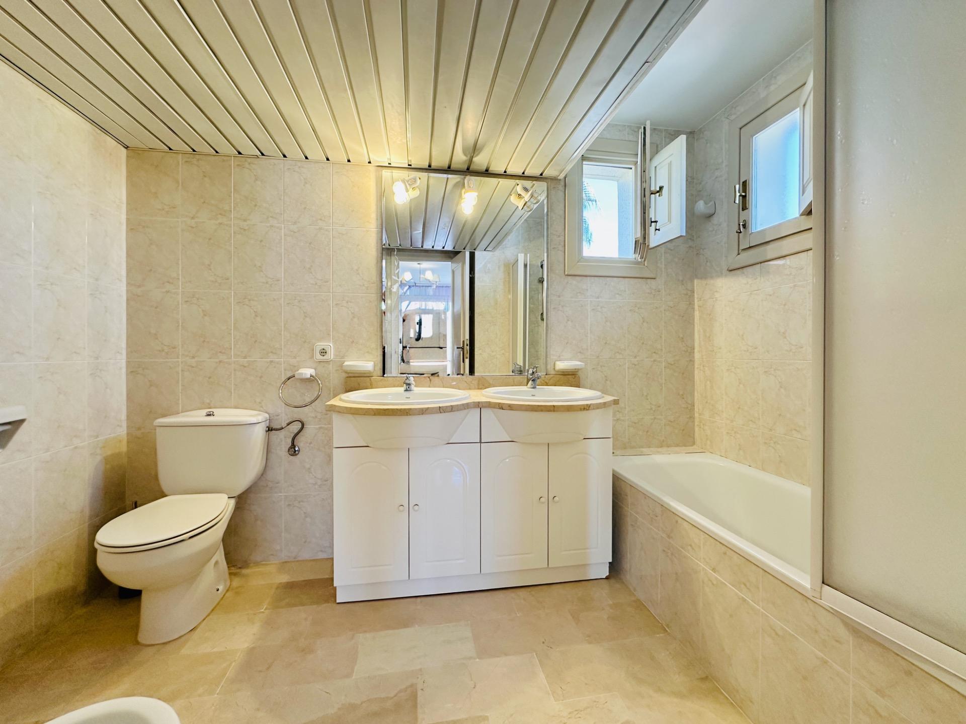 En la planta baja de 74 metros cuadrados, encontrará dos amplios dormitorios con dos baños y una amplia terraza con vistas a los alrededores y al mar.