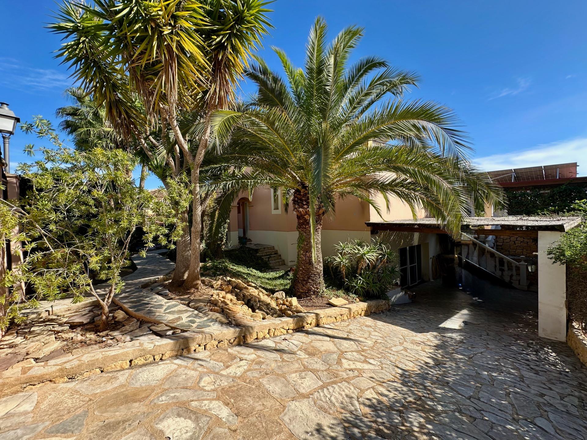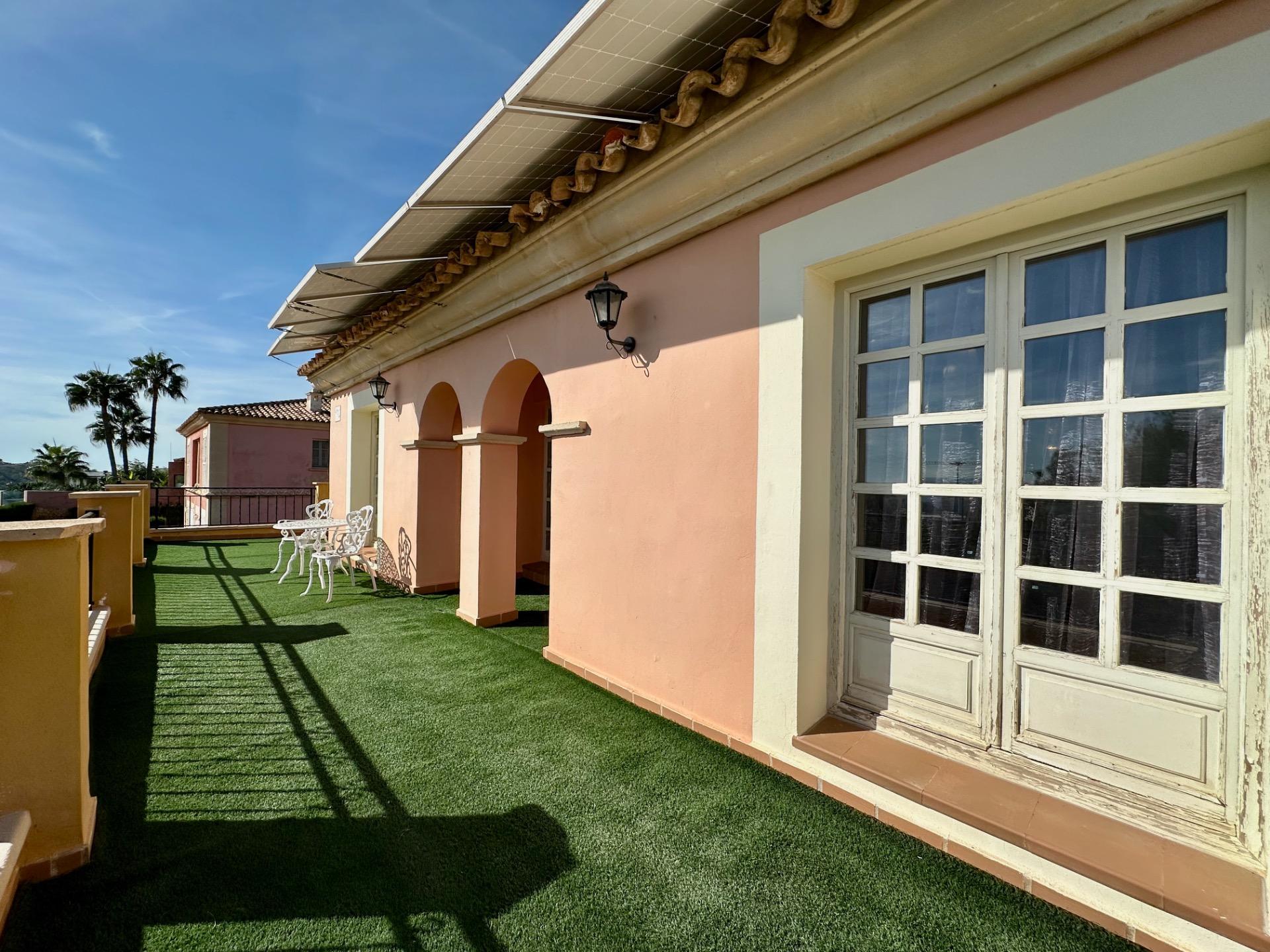 El patio está bien diseñado y es cómodo. Hay aparcamiento cubierto para varios coches, una zona de piscina, una enorme terraza, una zona de barbacoa cubierta e incluso un pequeño jardín. Dos naranjos, muy sabrosos y dulces, crecen junto con un mandarino, un limonero fructífero, un melocotonero, un albaricoquero, una higuera y un cerezo.